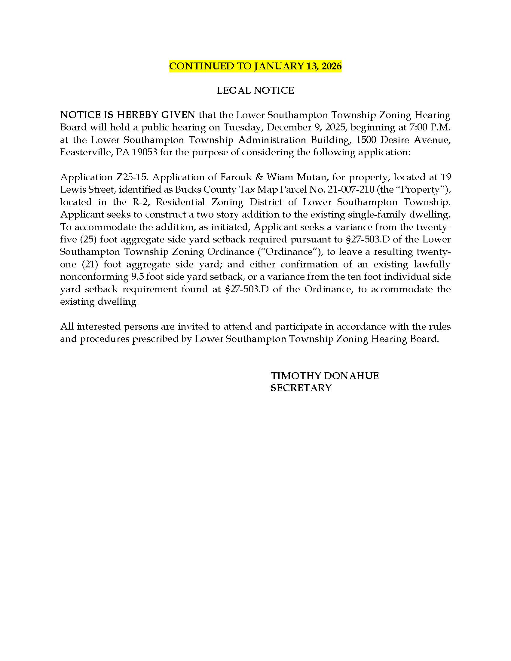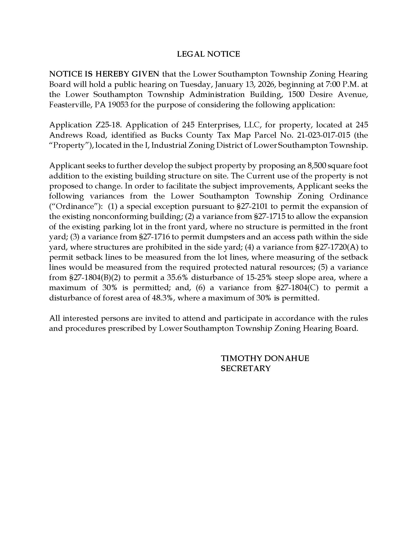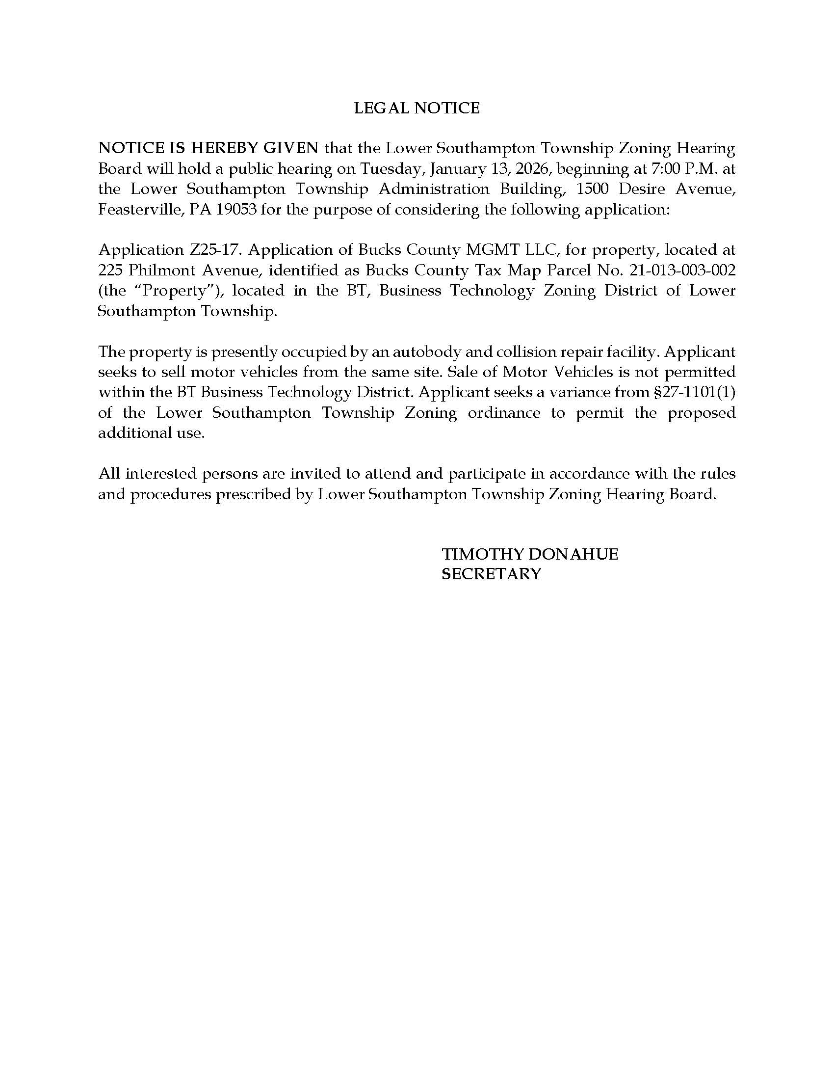 Zoning Hearing Board Meeting – Click here for Reorganization Notice & Legal Notices